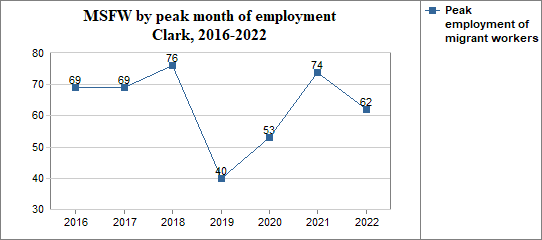 - and in that peak month the migrant workers made up 41 percent of Clark's agricultural workforce.