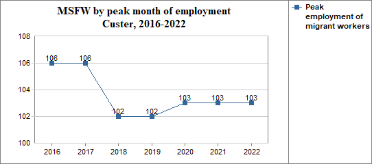 - and in that peak month the migrant workers made up 28 percent of Custer's agricultural workforce.