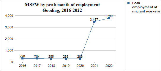 - the peak employment of migrant workers numbered 3,790,