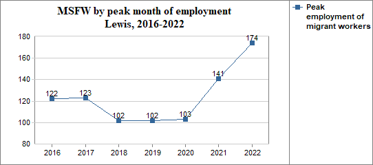 - and in that peak month the migrant workers made up 61 percent of Lewis's agricultural workforce.
