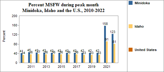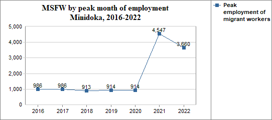 - and in that peak month the migrant workers made up 123 percent of Minidoka's agricultural workforce.