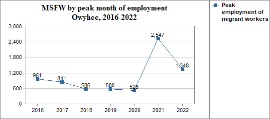 - and in that peak month the migrant workers made up 79 percent of Owyhee's agricultural workforce.