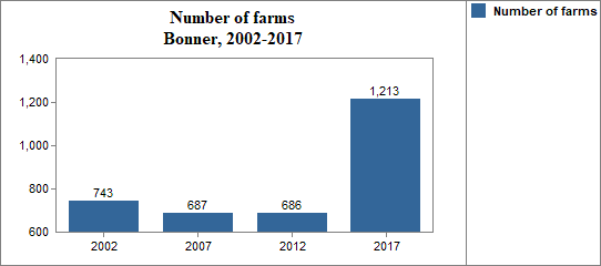 The USDA's Census of Agriculture provides data on the nation's farms every five years. A farm is defined as "any place from which $1,000 or more of agricultural products were produced and sold, or normally would have been sold, during the census year."