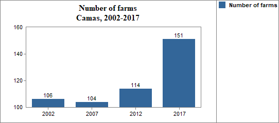 The USDA's Census of Agriculture provides data on the nation's farms every five years. A farm is defined as "any place from which $1,000 or more of agricultural products were produced and sold, or normally would have been sold, during the census year."