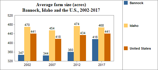 This indicator shows the total amount of farmland, as well as the average and median size of farms The median size of farms is the size at which half of all the farms are smaller and half are larger. A larger median size of farms indicates that there are more large farms.