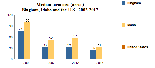 - the median farm size was 25 acres, and