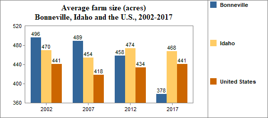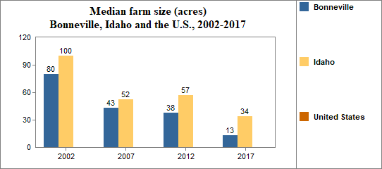 This indicator shows the total amount of farmland, as well as the average and median size of farms The median size of farms is the size at which half of all the farms are smaller and half are larger. A larger median size of farms indicates that there are more large farms.
