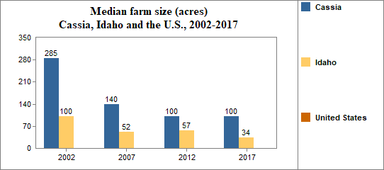 - the median farm size was 100 acres, and