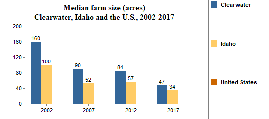 - the median farm size was 47 acres, and