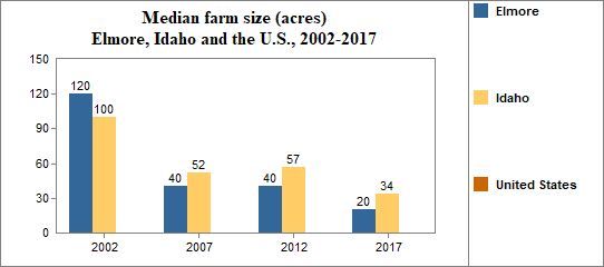 - the median farm size was 20 acres, and