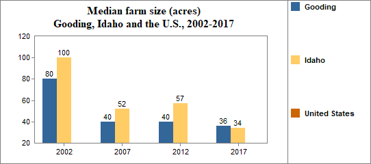 - the median farm size was 36 acres, and