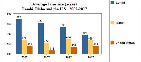 This indicator shows the total amount of farmland, as well as the average and median size of farms The median size of farms is the size at which half of all the farms are smaller and half are larger. A larger median size of farms indicates that there are more large farms.