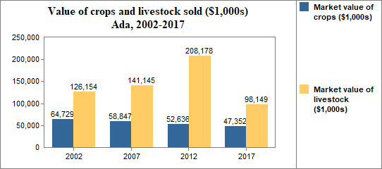 - the average market value per farm of all agricultural products sold decreased by 26 percent between 2007 and 2017.