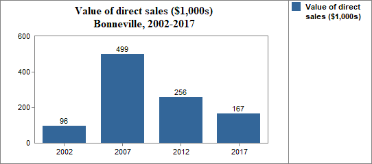 Here we report the number of farms that sell at least some of their products directly to individuals for human consumption, as well as the value of these product sales.