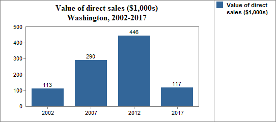 Here we report the number of farms that sell at least some of their products directly to individuals for human consumption, as well as the value of these product sales.