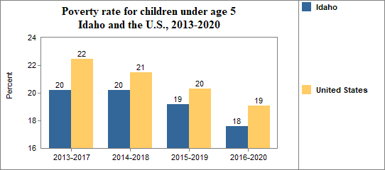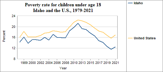 Among Idaho's residents, the poverty rate for people under 18 . . .