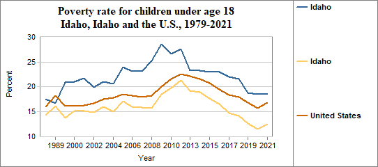 Among Idaho's residents, the poverty rate for people under 18 . . .