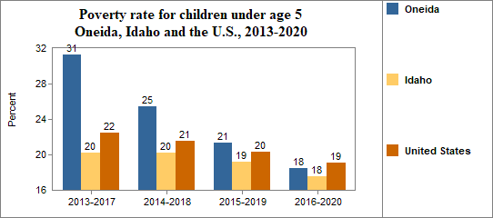 - was 18.4 percent in 2016-2020 compared to 17.6 percent in Idaho;
