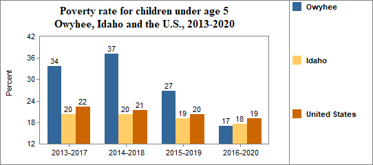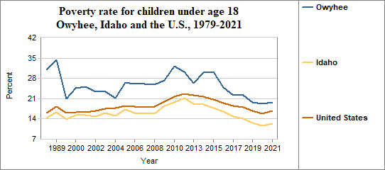 Among Owyhee's residents, the poverty rate for people under 18 . . .