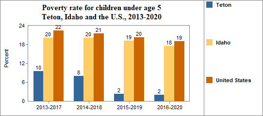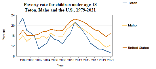 Among Teton's residents, the poverty rate for people under 18 . . .