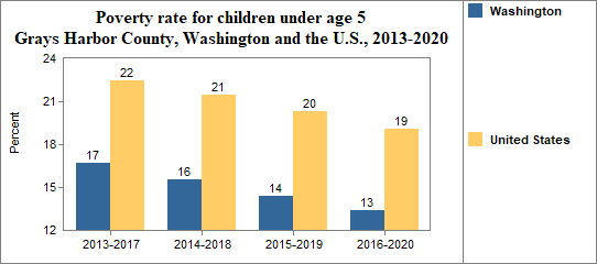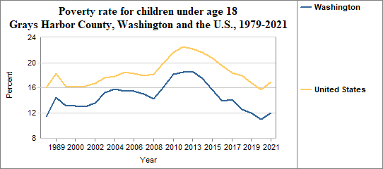 Among Grays Harbor County's residents, the poverty rate for people under 18 . . .