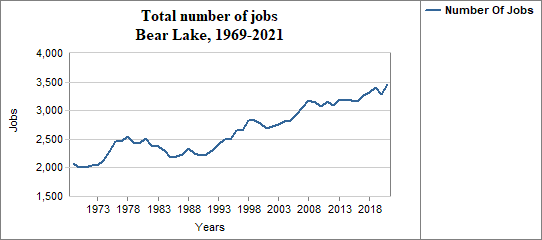 In Bear Lake, the number of jobs . . .