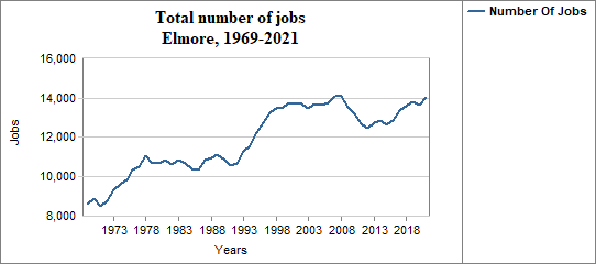 In Elmore, the number of jobs . . .