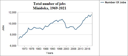 In Minidoka, the number of jobs . . .