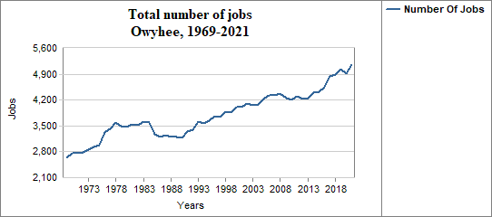 In Owyhee, the number of jobs . . .