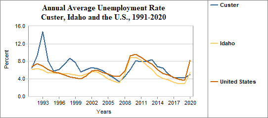 Custer's average annual unemployment rate in 2020 . . .