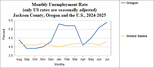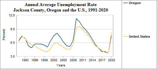 Jackson County's monthly unemployment rate was NA percent in January, 1900. This compares to NA percent in Oregon as a whole.