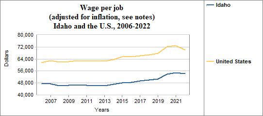 The real wage per job in 2022 in Idaho . . .