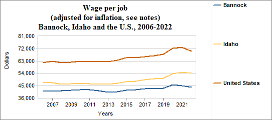 Wage per job refers to the average annual wage or salary per job, in other words, total compensation divided by the number of filled jobs. Here, we provide information on the real wage per job, which means the data have been adjusted for inflation.