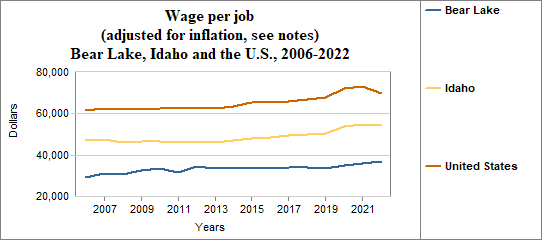 Wage per job refers to the average annual wage or salary per job, in other words, total compensation divided by the number of filled jobs. Here, we provide information on the real wage per job, which means the data have been adjusted for inflation.