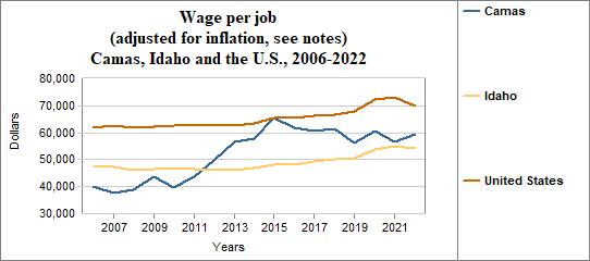 The real wage per job in 2022 in Camas . . .