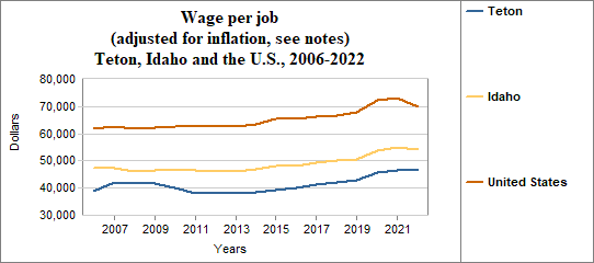 Wage per job refers to the average annual wage or salary per job, in other words, total compensation divided by the number of filled jobs. Here, we provide information on the real wage per job, which means the data have been adjusted for inflation.