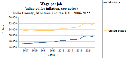 Wage per job refers to the average annual wage or salary per job, in other words, total compensation divided by the number of filled jobs. Here, we provide information on the real wage per job, which means the data have been adjusted for inflation.