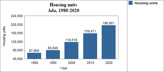 - the number of housing units increased by 19.1 percent from 1980 to 1990; increased by 46.6 percent from 1990 to 2000; increased by 34.6 percent from 2000 to 2010; and increased by 23.5 percent from 2010 to 2020;