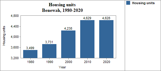 - the number of housing units increased by 6.6 percent from 1980 to 1990; increased by 13.6 percent from 1990 to 2000; increased by 9.2 percent from 2000 to 2010; and decreased by 0.0 percent from 2010 to 2020;