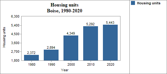 - the number of housing units increased by 22.0 percent from 1980 to 1990; increased by 50.3 percent from 1990 to 2000; increased by 21.7 percent from 2000 to 2010; and increased by 2.9 percent from 2010 to 2020;
