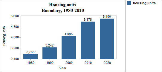 - the number of housing units increased by 17.7 percent from 1980 to 1990; increased by 26.3 percent from 1990 to 2000; increased by 26.4 percent from 2000 to 2010; and increased by 4.3 percent from 2010 to 2020;