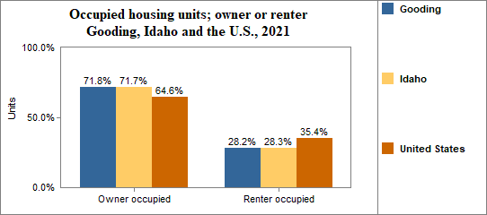 - in 2017-2021, 64.4 percent of all housing units were owner occupied, 25.3 percent were occupied by renters, and 10.3 percent were vacant.