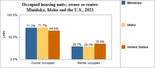 - in 2017-2021, 64.0 percent of all housing units were owner occupied, 25.8 percent were occupied by renters, and 10.2 percent were vacant.