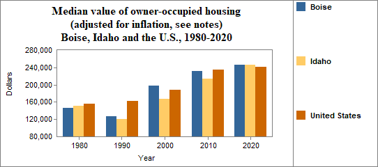 The real median value of owner occupied housing in Boise from 2017-2021. . .