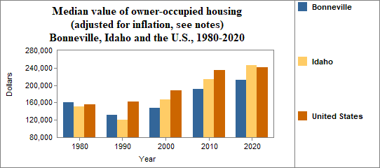 The real median value of owner occupied housing in Bonneville from 2017-2021. . .