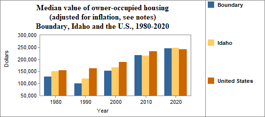 The real median value of owner occupied housing in Boundary from 2017-2021. . .