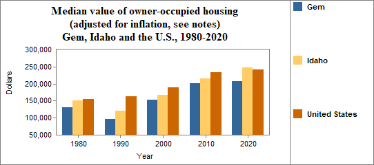 The real median value of owner occupied housing in Gem from 2017-2021. . .