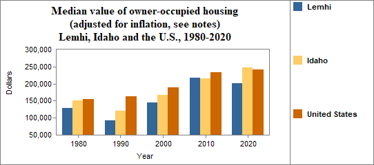 The real median value of owner occupied housing in Lemhi from 2017-2021. . .