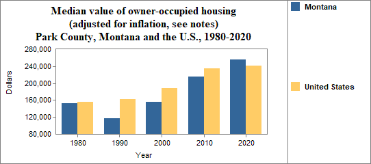 The real median value of owner occupied housing in Park County from 2017-2021. . .