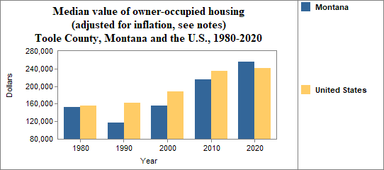 The real median value of owner occupied housing in Toole County from 2017-2021. . .